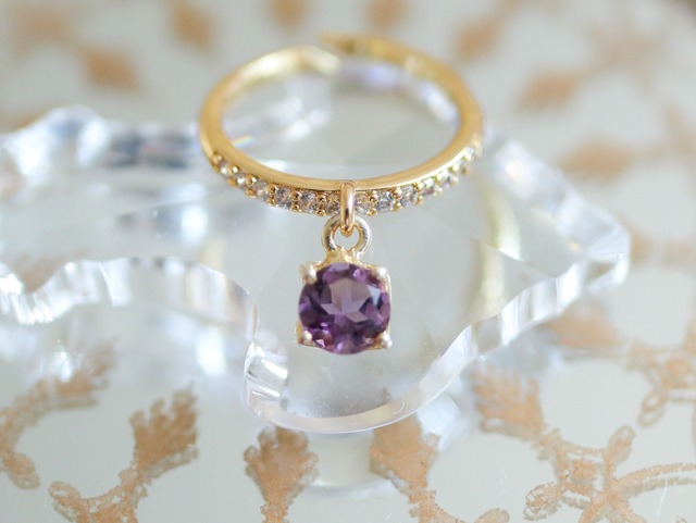 宝石質のアメジストをジルコニアのリング台に合わせました。 揺れる天然石が美しいリング。 ブラジル産宝石質アメジストAAA 石サイズ6×6mm ※海外輸入のパーツは色むらや左右非対称、サイズの個体差、ヴィンテージならではの欠けや歪み、または天然素材(貝や天然石など)ならではのキズや不純物、シラーなど個体差があります。 神経質な方、完璧なものをお求めになる方はご購入をお控えください。