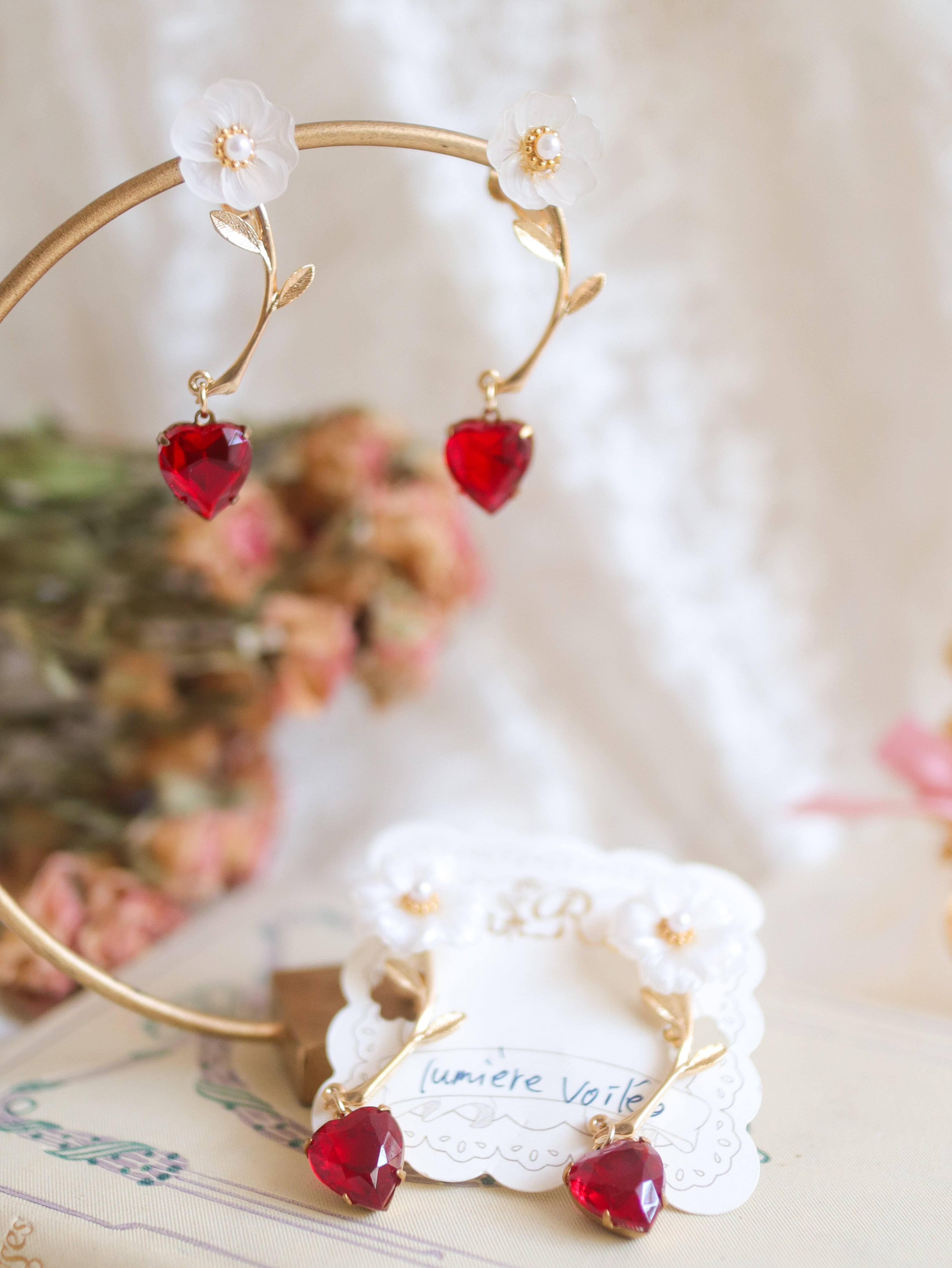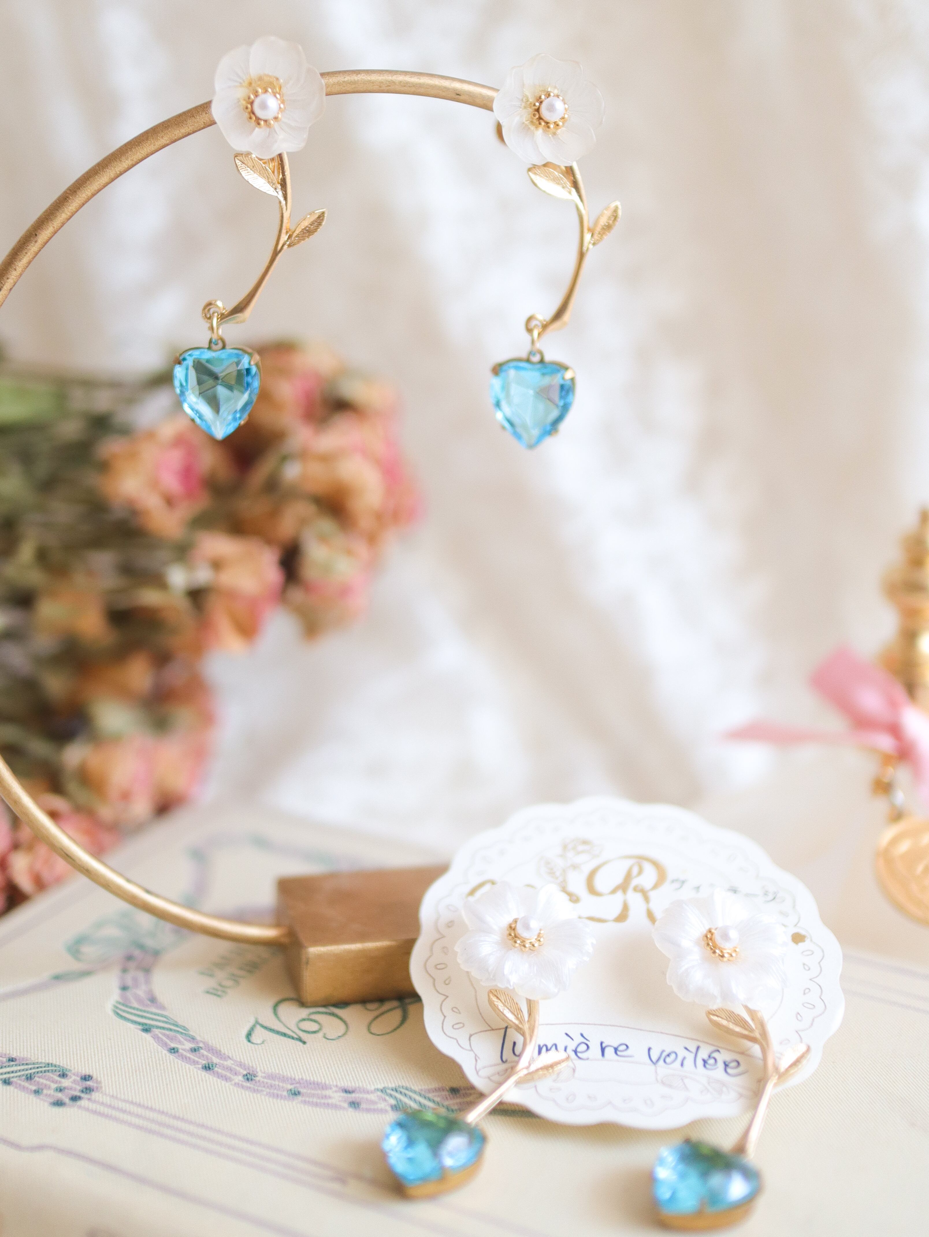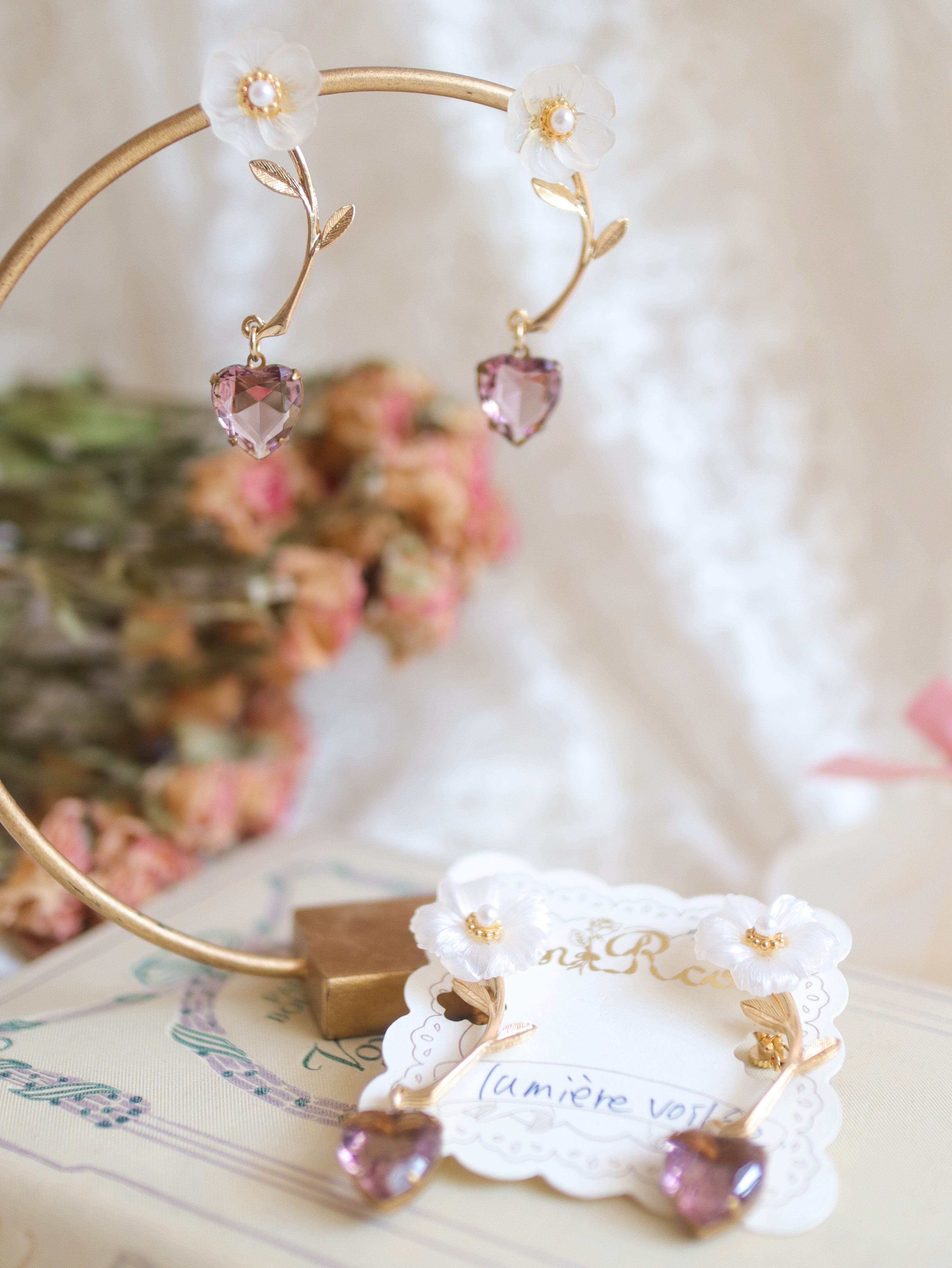 フランスの小花ビーズ、オリジナル金具、チェコヴィンテージガラスを合わせた、上品に纏まった小ぶりの耳飾りです。