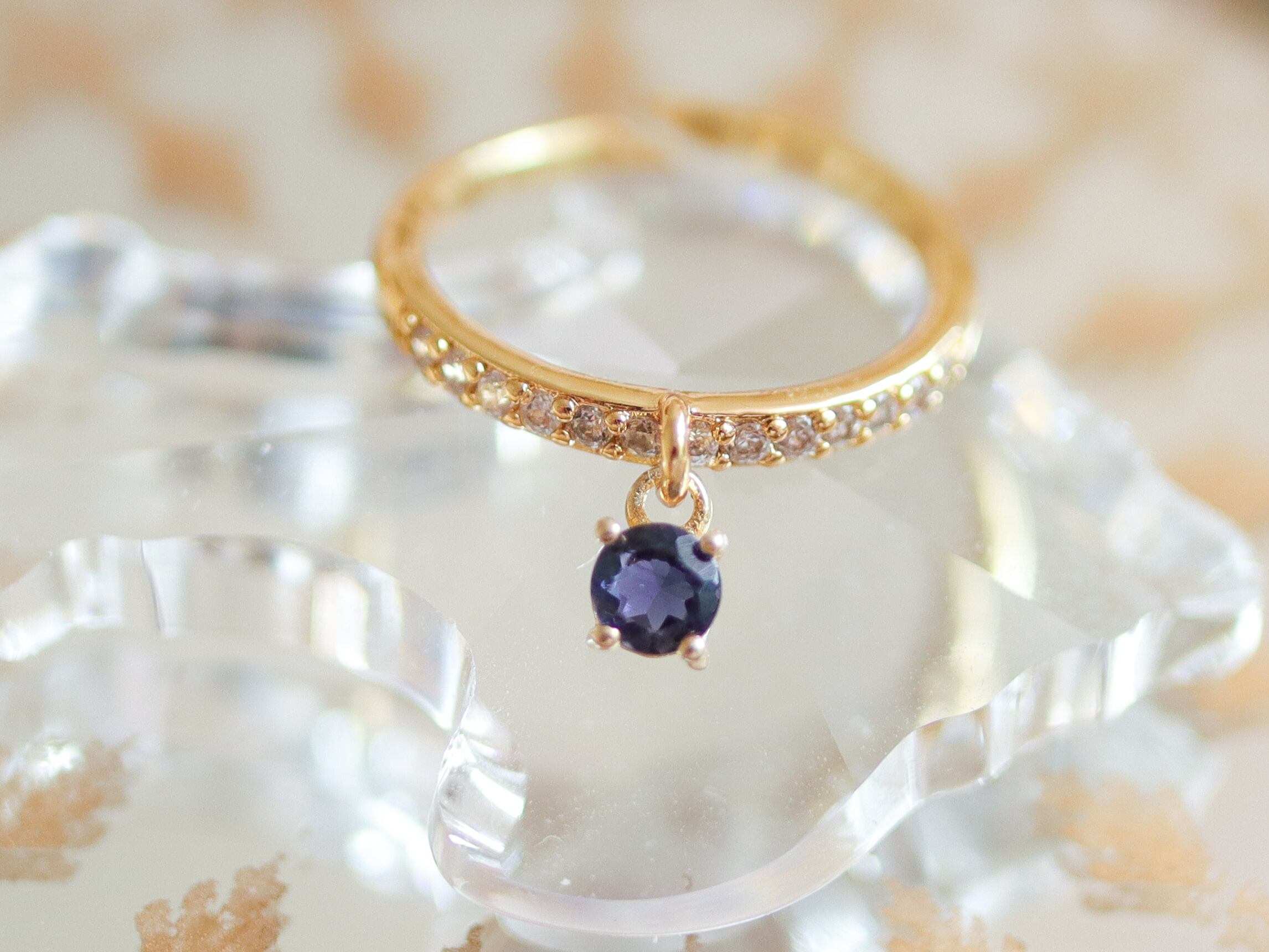 宝石質のアイオライトをジルコニアのリング台に合わせました。