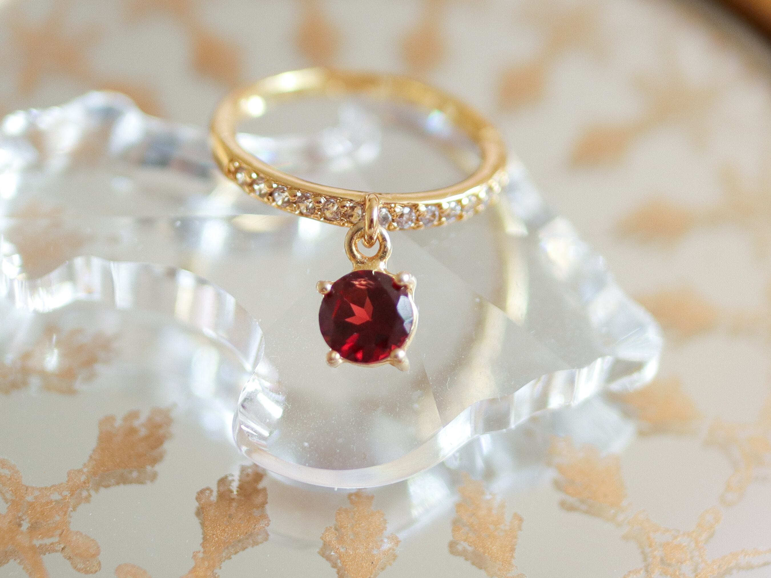 宝石質のガーネットをジルコニアのリング台に合わせました。