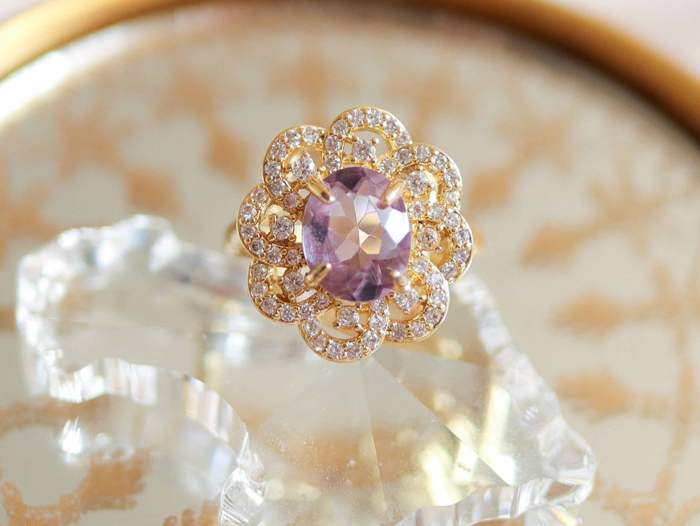 宝石質のアメジストをジルコニアのリング台に合わせました。