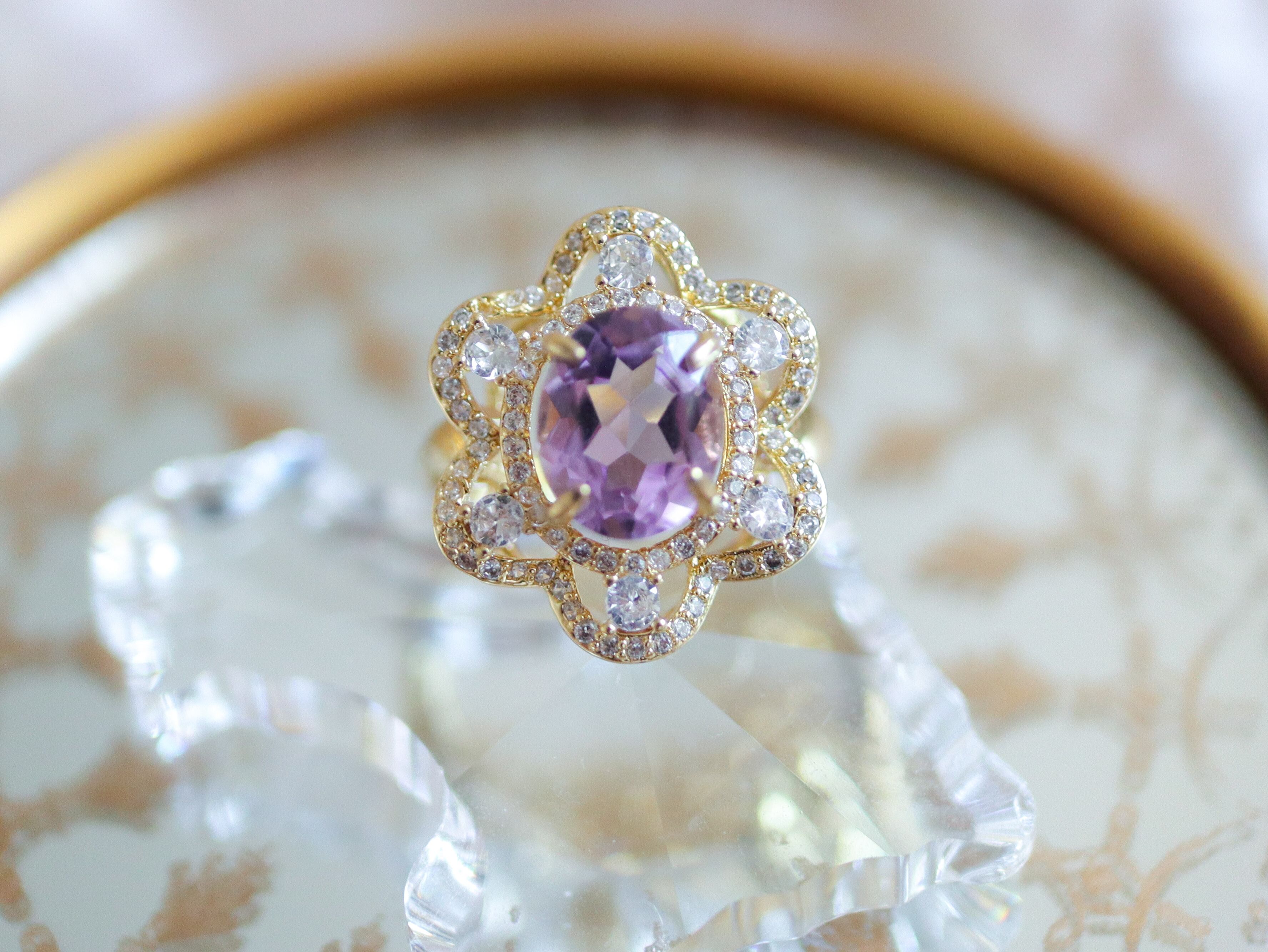 宝石質のアメジストをジルコニアのリング台に合わせました。