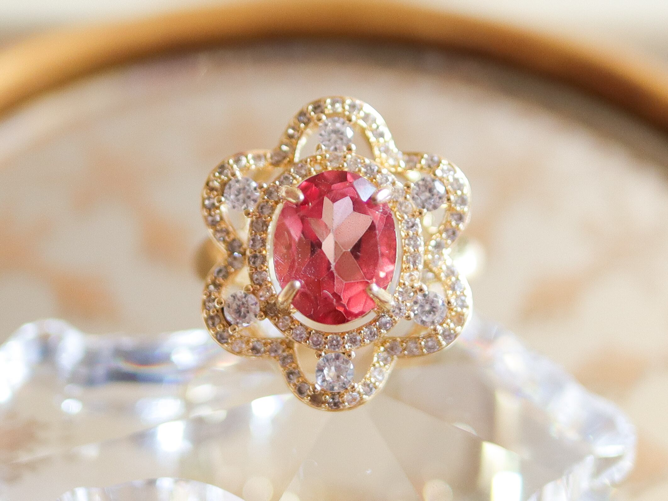 《天然石》ピンクトパーズのジルコニアリング